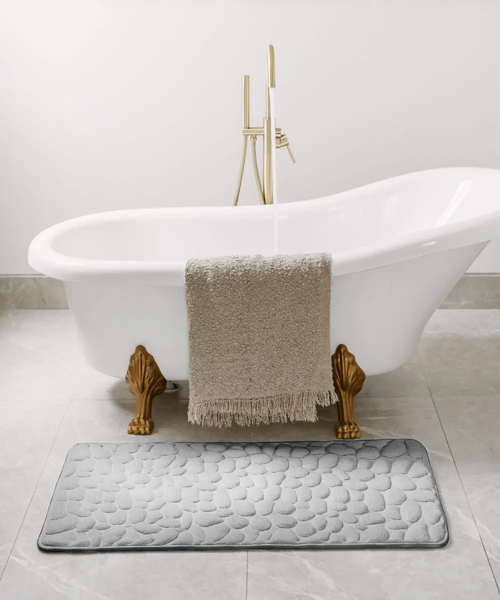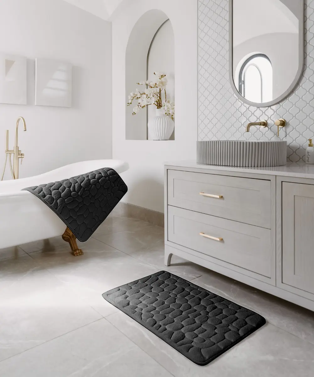 Questo tappeto offre un comfort senza pari grazie alla sua texture morbida e massaggiante, riproducendo la sensazione di una spa a casa. I vostri piedi godranno di un benessere totale dopo ogni doccia.