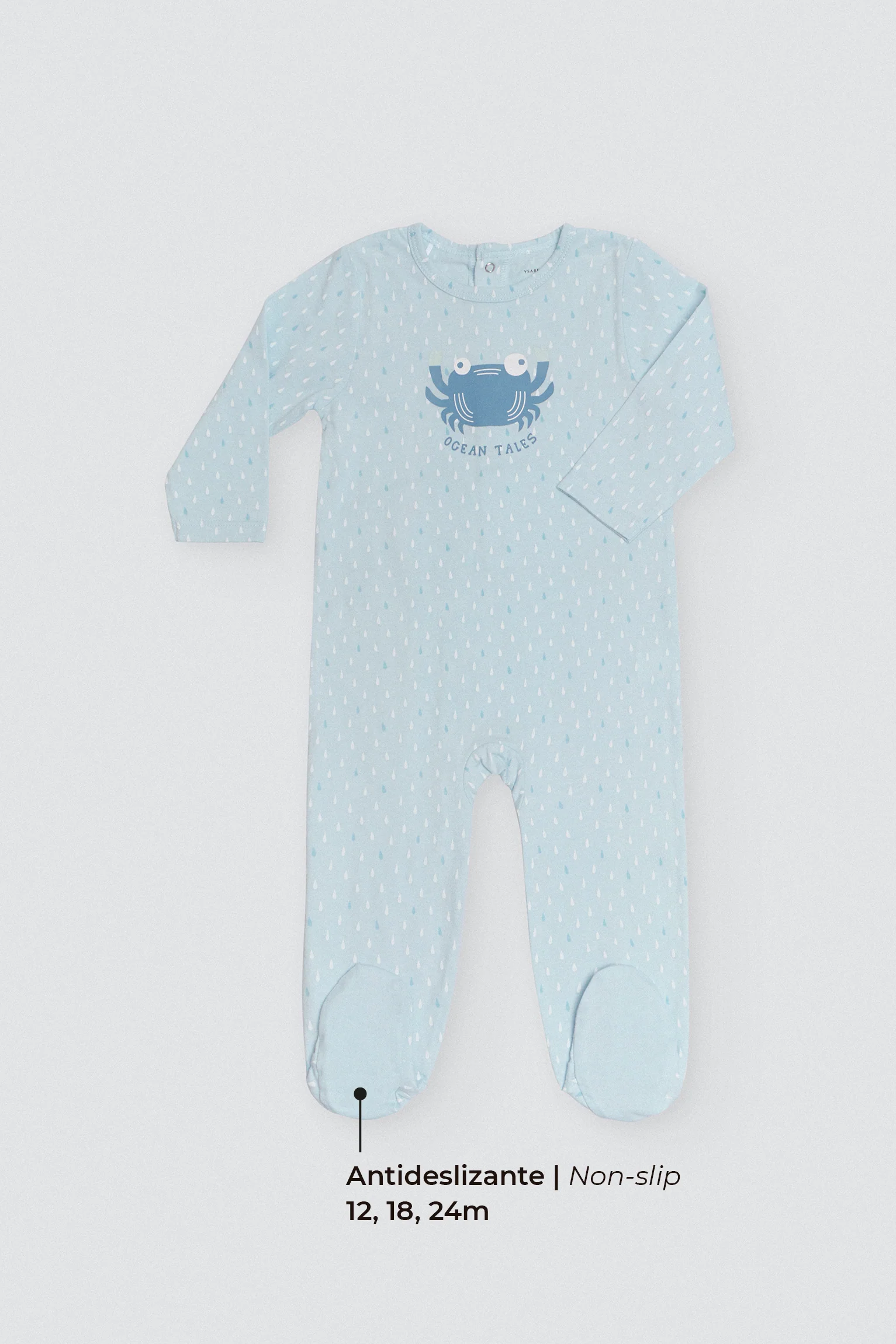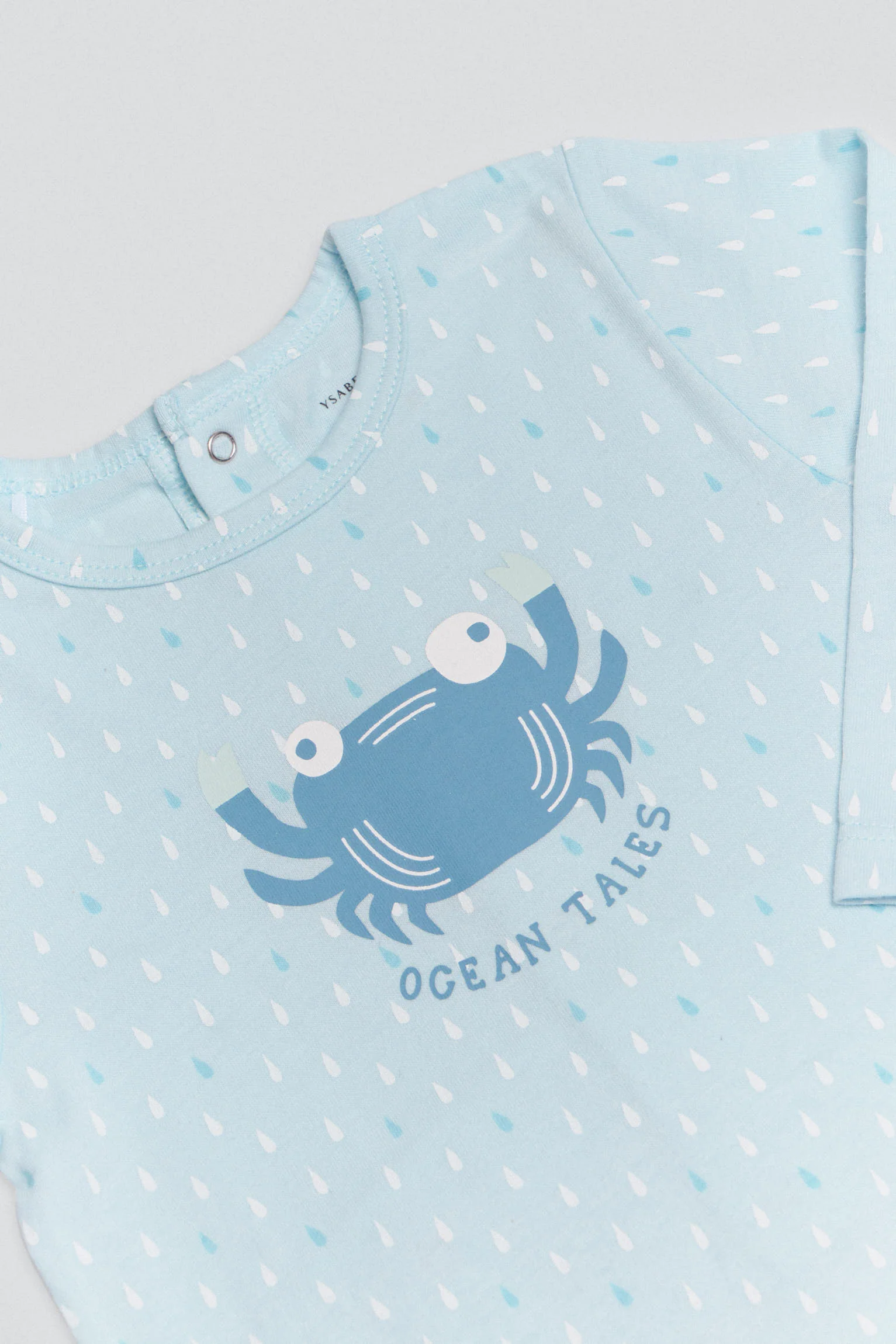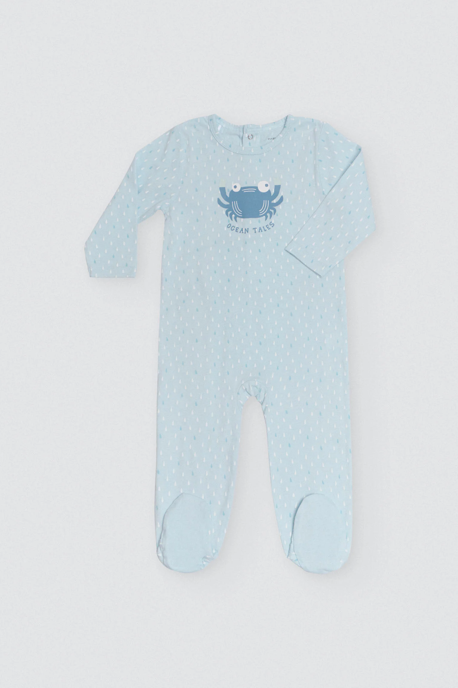 Tutina da neonato a maniche lunghe di colore blu con stampa gocce d’acqua. Con la stampa di un granchio davanti al centro. Realizzato in cotone naturale al 100%, è morbido e fa sentire il bambino a suo agio. Con un design che offre una maggiore protezione dal freddo.