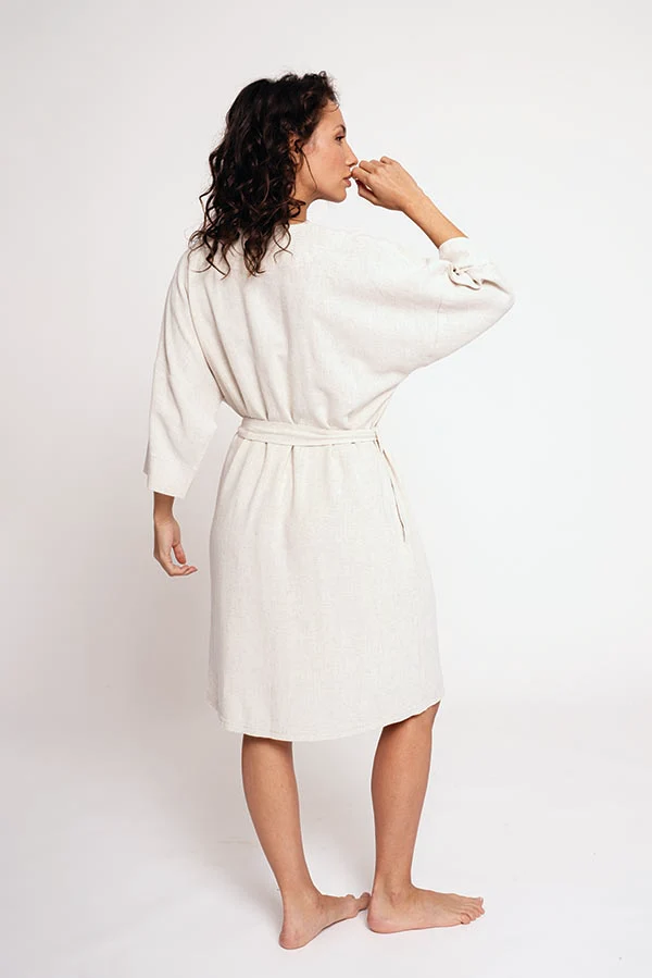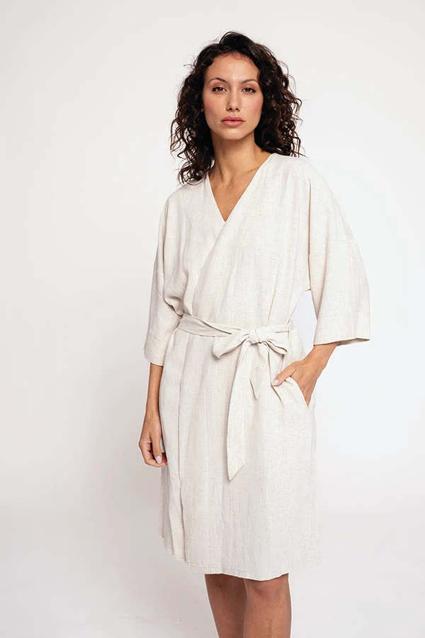 Vestito lungo da donna in lino. Può essere legato in vita.